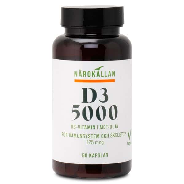 Närokällan D3 5000 Vegan er et kosttilskud til “solskinsvitaminet” D-vitamin fra helt vegetabilske kilder. I dette kosttilskud udvindes vitaminet fra alger og kombineres med kokosolie, fordi vitaminet er fedtopløseligt. På den måde optimeres kroppens evne til at optage vitaminet.