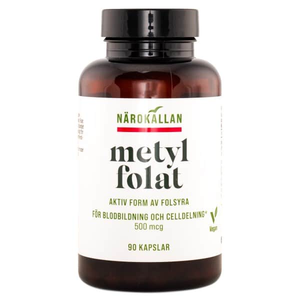 Närokällan Metylfolat er et supplement af methylfolat, som har en vigtig funktion i kroppen i dannelsen af hæmoglobin i de røde blodlegemer, men også til celledeling og proteinproduktion. Folat som methylfolat er den bioidentiske og naturlige form, som kroppen selv bruger, og som ikke behøver at blive konverteret, før den kan optages af cellerne, i modsætning til folinsyre, som ofte anvendes i stedet.Dette er den syntetiske version, som skal konverteres for at det kan udnyttes af kroppen.