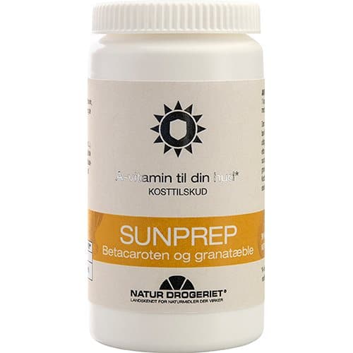 Sunprep fra Natur-Drogeriet er et kosttilskud designet til at forberede din hud til solen. Produktet indeholder en kombination af betacaroten og granatæbleekstrakt.