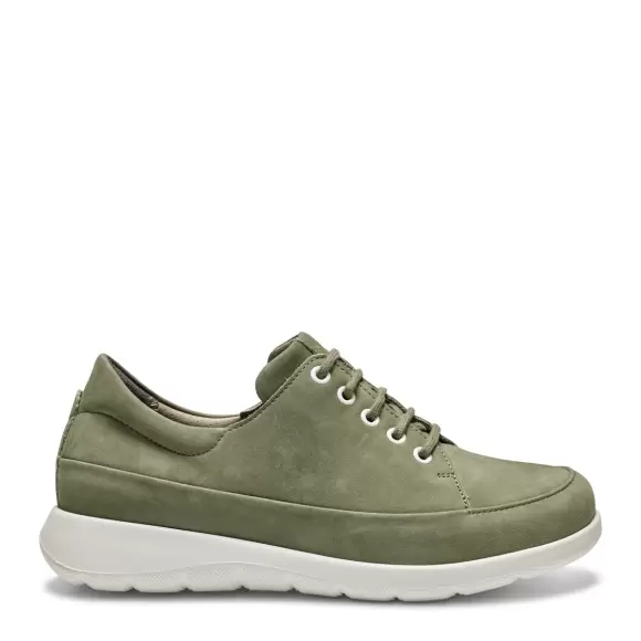 Pæne, enkle og behagelige sko fra New feet til damer, som er lavet med en flot overdel i Nubuck i farven Græn. Skoen er udstyret med en praktisk snørelukning, som gør dem nemme at justere og tilpasse til foden. Skoen er lavet med en sål i EVA og har et hælløft på 25 mm – drop 15 mm.Læst: 78Læstegruppe: SIndersål: Protektor 6 mm (udtagelig)