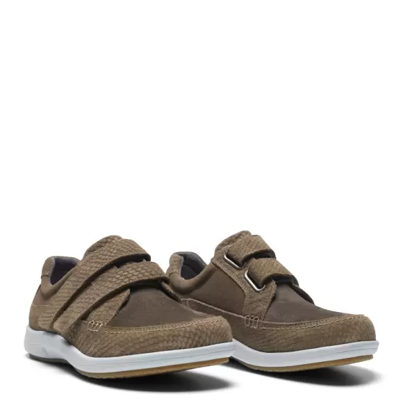 God rummelig komfort sko fra New Feet lavet i kalveskind med et smart snake print, skoen reguleres nemt efter foden med velcro remme, så du opnår den bedste komfort til din fod. På forfoden er der Orthostretch der øjeblikkeligt former sig efter foden og giver plads til evt. knyster og hammertæer. Indvendigt ligger der en blød og støddæmpende protektor sål, som også er udtagelig.