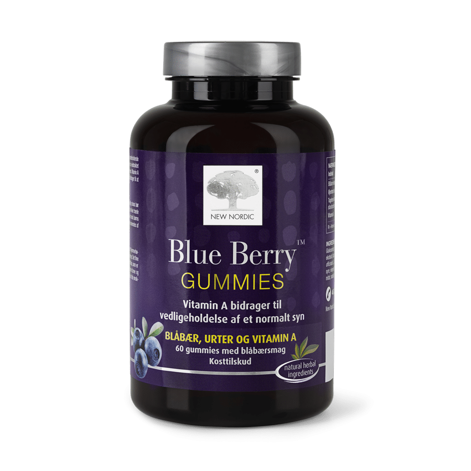 Blue Berry er en blåbær gummy med en særlig kombination indeholdende ekstrakter af øjentrøst og tagetesblomst samt vitamin A. Tagetes ekstraktet fremstilles ved en særlig proces, så indholdet af lutein standardiseres. Vitamin A bidrag