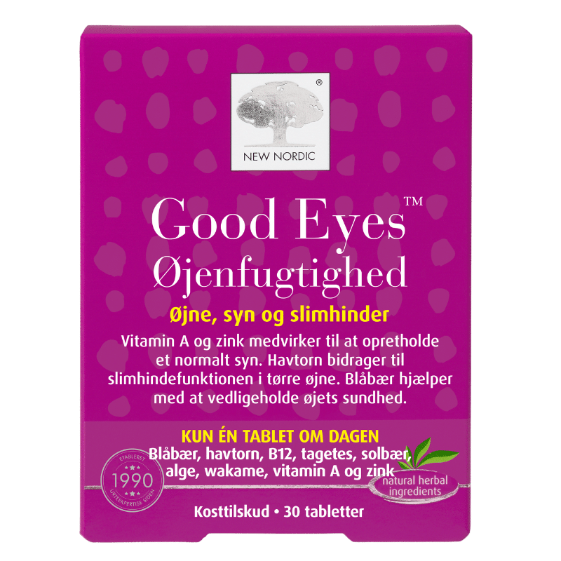 Good Eyes Øjenfugtighed. Vitamin A og zink birager til at opretholde et normal syn. Blåbær hjælper med at vedligeholde øjets sundhed.