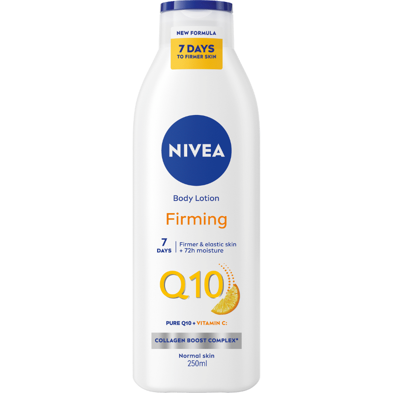 Få en fastere og mere elastisk hud med Nivea Q10 Firming Body Lotion. Den unikke formel med Q10 og C-vitamin giver synligt forbedret hud på kun 7 dage og holder den fugtet i 72 timer.
