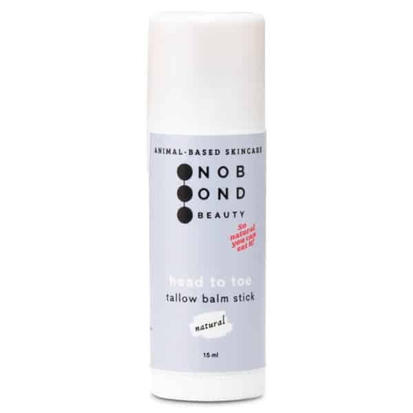 Blødgør dine læber eller andre tørre områder på kroppen med Tallow Balm Stick fra No Bond Beauty! Det er Tallow Balm Natural, men i en praktisk læbepomade, hvilket gør det nemt at anvende præcis, hvor du har brug for det. Basen af oksetalg, som ligner hudens egen fedtsammensætning, giver hurtig fugt og tilfører vigtige vitaminer som A, D3, E, K2 og B12. Sticken er beriget med økologisk olivenolie og bivoks, som gør det til en mild og næringsrig balm, der er nem at tage med sig. Talgets unikke fedtsammensætning modvirker oxidering og beskytter mod frie radikaler, hvilket gør balmen naturligt holdbar i lang tid uden konserveringsmidler. Den er desuden helt vandfri og fri for tilsætningsstoffer, emulgerings- eller fortykningsmidler.