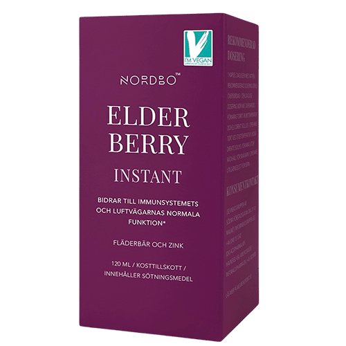 Flydende kosttilskud med hyldebær og zink, der har en god bærsmag.