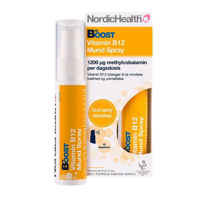 B12-vitamin oral spray der består af B12-vitaminet methylcobalamin.