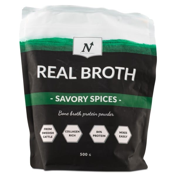 Nyttoteket Real Broth er fremstillet af benbouillon, der er kogt på marvben fra svenske kvæg og derefter spraytørret. Ved at koge benbouillon på marvben opnår du et produkt med højt proteinindhold og hele syv typer kollagen. Alle bouilloner blander sig fremragende i både varme og kolde drikke samt passer perfekt i madlavning og bagning. Fri for tilsat sukker og kunstige sødestoffer.