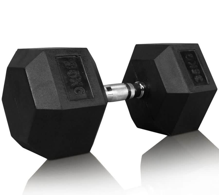 Odin Hex Håndvægte 52,5kg (1 stk) er Hex håndvægte i høj kvalitet, disse håndvægte er opbygget med jern og belagt med hårdt gummi, Dette moinsker evt. skader på gulv ved tab af håndvægte.Odin Hex håndvægte er seks kantede, dette gør, at de ikke ruller når