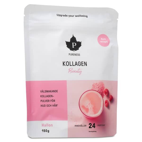 Pureness Kollagen Beauty er et kollagenpulver med god hindbærsmag. Det indeholder hydrolyseret VERISOL® type 1 kollagenpulver af høj kvalitet, biotin og C-vitamin. C-vitamin bidrager til normal kollagendannelse og beskytter cellerne mod oxidativt stress, mens biotin bidrager til at vedligeholde hudens og hårets kvalitet. Bland det direkte i en valgfri væske, for eksempel i vand eller en smoothie så er det bare at drikke og nyde!