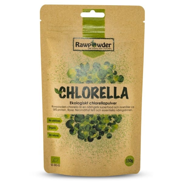 RawPowder Chlorella-pulver er et rent og økologisk chlorella-pulver, der er fri for tilsætningsstoffer og smagsstoffer. Chlorella er en fantastisk fødevare, hentet direkte fra naturen. Chlorella er en ferskvandsalge og har et unikt ernæringsindhold pakket med vitaminer, mineraler, antioxidanter og klorofyl. Chlorella indeholder også en lang række forskellige aminosyrer og enzymer og er også en af de få vegetabilske kilder til vitamin B12. Chlorellapulver er derfor en fremragende næringskilde for vegetarer og veganere.