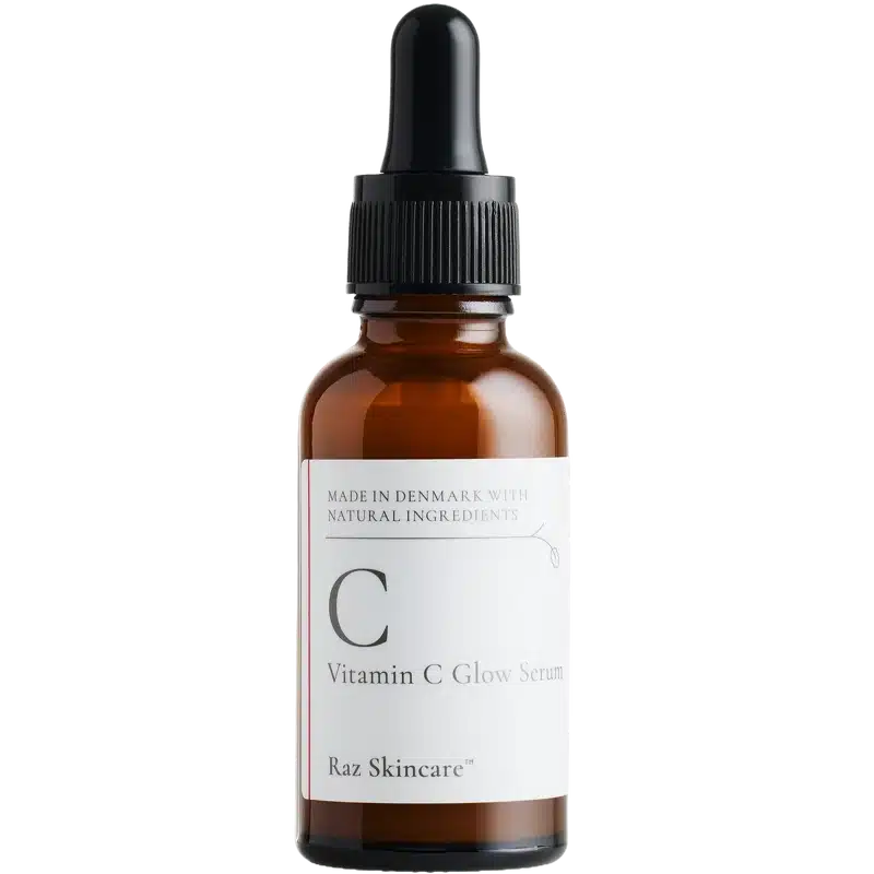 Raz Skincare C Vitamin C Glow Serum er et helt fantastisk serum spækket med effektive ingredienser, som booster din hud, for at give den et mere glat og strålende udseende. Nøgleingrediensen i dette serum er Ethyl Ascorbinsyre, en meget stabil form at C-v