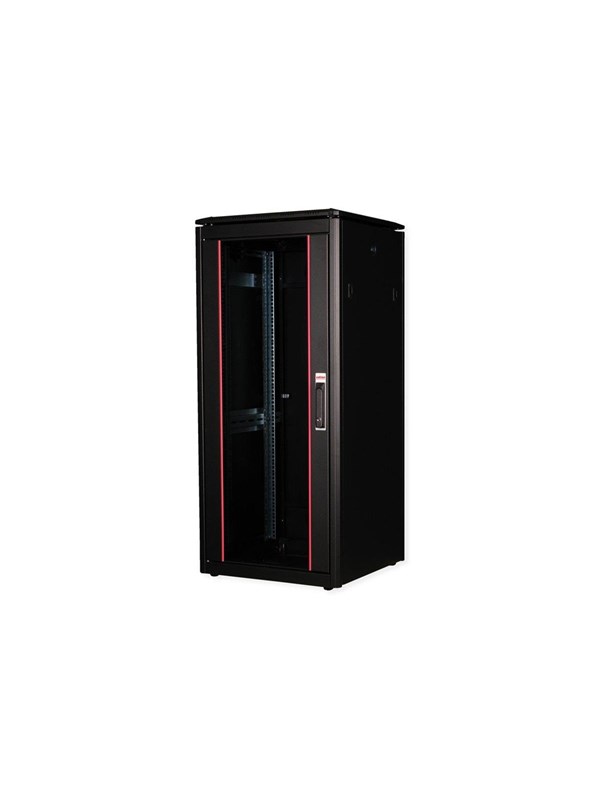 Rack kabinet, with glass door, 600 x 600 mm (WxD), RAL 9005, jet black, 26U, 19″