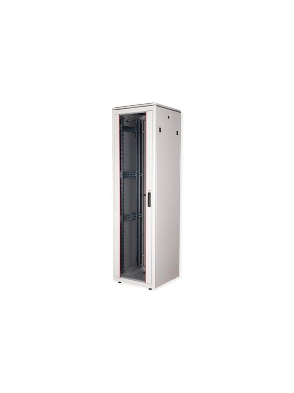 Rack kabinet, with glass door, 600 x 600 mm (WxD), RAL 7035, lysegrå, 42U, 19″