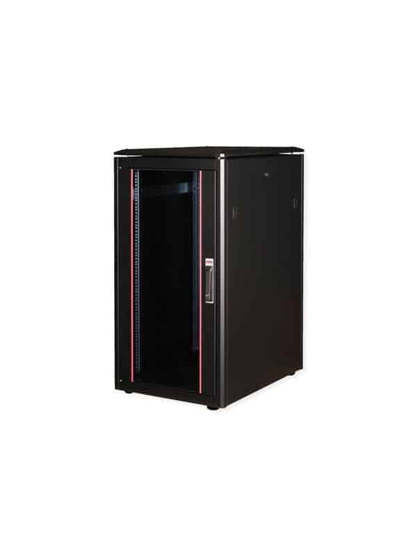 Rack kabinet, with glass door, 600 x 800 mm (WxD), RAL 9005, jet black, 22U, 19″