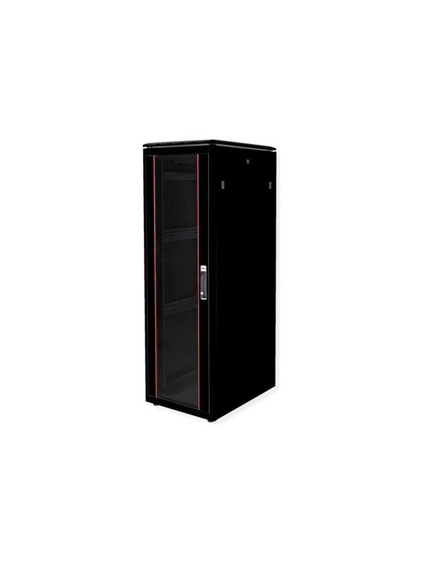 Rack kabinet, with glass door, 600 x 800 mm (WxD), RAL 9005, jet black, 36U, 19″