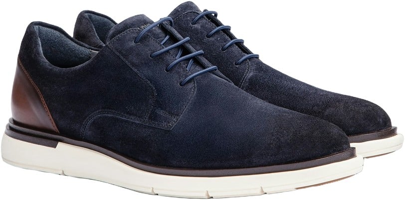 Bær LLOYD SABLE 113 i en elegant blå, en derby-sko med snørebånd, der perfekt kombinerer elegance og stil. Denne model er lavet af en kombination af højkvalitets glat læder og ruskind, hvilket giver skoen en enestående tekstur og et tiltalende udseende. G