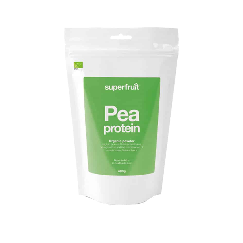 Superfruit Pea Protein Powder (400g) Perfekt plantebaseret proteinpulver fra Superfruit, baseret på ærter! Af denne grund er produktet specielt velegnet til vegetarer og veganerer samt til dig, der ikke kan tåle laktose, soja eller gluten. De gule ærter, hvorfra proteinpulveret udvindes, er 100% plantebaseret og økologisk certificeret, for at opnå den højst mulige kvalitet til fordel for dig! Det færdige produkt indeholder hele 80% protein, hvilket er fordelagtigt for dig, som ønsker at opbygge- eller vedligeholde muskelmasse, eller bare få mere protein i din daglige kost! Anvendelse 30g – cirka 3/4 dl – bruges per dag, og kan blandes op med vand, plantemælk, juice, i smoothies, yoghurt, skyr, bagværk eller hvad end, du ønsker at bruge det i. Næringsindhold NÆRINGSINDHOLD: Næringsværdi i Superfruit Pea Protein Powder pr. 100 g: Energi (kJ/kcal) 1707 kJ/ 404 kcal Fedt (g) 6,8 g – heraf mættede fedtsyrer (g) 0 g Kulhydrater 0 g – heraf sukkerarter 0 g Fibre 5,7 g Protein 83 g Salt 2,9 g Ingredienser Ærteprotein* Er der angivet en * ved en ingrediens, er den 100% økologisk