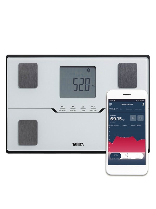 Smart rejsestørrelse personvægt- 10 målinger- 5 minder- Genkaldsfunktion- Dobbelt frekvens – 4 elektroderDen meget nøjagtige smarte kropsanalysevægt til hele familien. Måler blandt andet metabolisk alder: en eksklusiv måling fra TANITA.