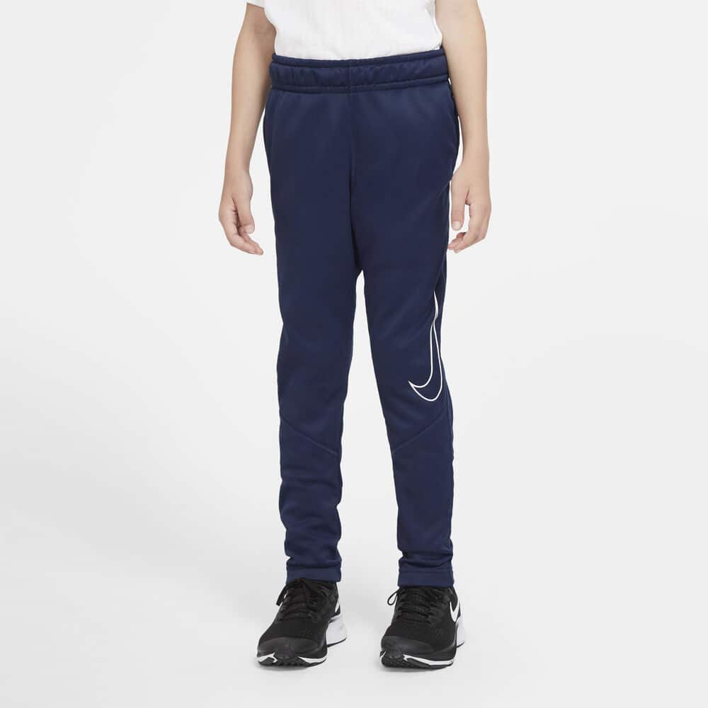 Disse bukser er ikke bare et par behagelige sweats. Nike Therma materialet holder nemlig også på varmen i det kolde vintervejr. Du kan trygt sende dit barn afsted med disse bukser på, og du skal ikke bekymre dig om han/hun fryser. Derudover er de også fac