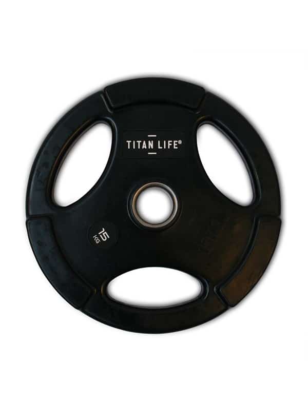TITAN LIFE PRO Weight Disc er en solid vægtskive, som er belagt med stødabsorberende gummimateriale, hvilket gør den ideel til crosstraining og al slags vægttræning med olympiske vægtstænger. Vægtskiven passer til 50 mm. vægtstænger og vejer 15 kg. Olympi