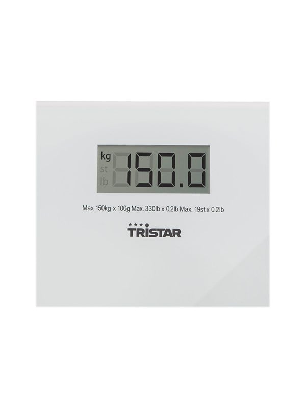 Personvægt op til 150 kg, 100 grams nøjagtighed, trædeoverflade 30 x 30 cm, hvid