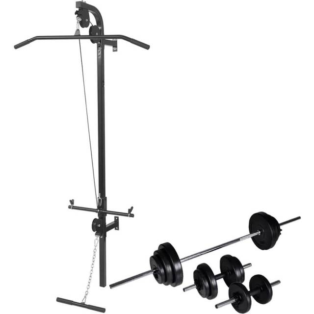 vidaXL Vægmonteret styrketårn med vægtstang- og håndvægtsæt 30,5 kg