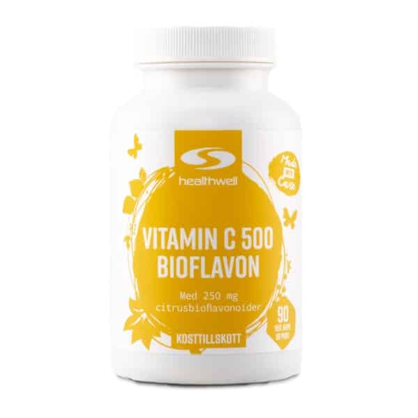 C-vitamin Bioflavon er vegetabilske kapsler med et højt indhold af C-vitamin og citrusbioflavonoider. Dette vitamin er nødvendigt for kroppen og godt for immunsystemet, da C-vitamin er en potent antioxidant, som beskytter cellerne mod oxidativt stress. C-vitamin Bioflavon fra Healthwell indeholder rigeligt med citrusbioflavonoider, som gør det nemmere at optage vitaminet og forstærker funktionen at det. C-vitamin er også nødvendigt ved fremstilling af kollagen, og det er en vigtig komponent ved opbygningen af brusk, og det hjælper med at optage jern fra maden.