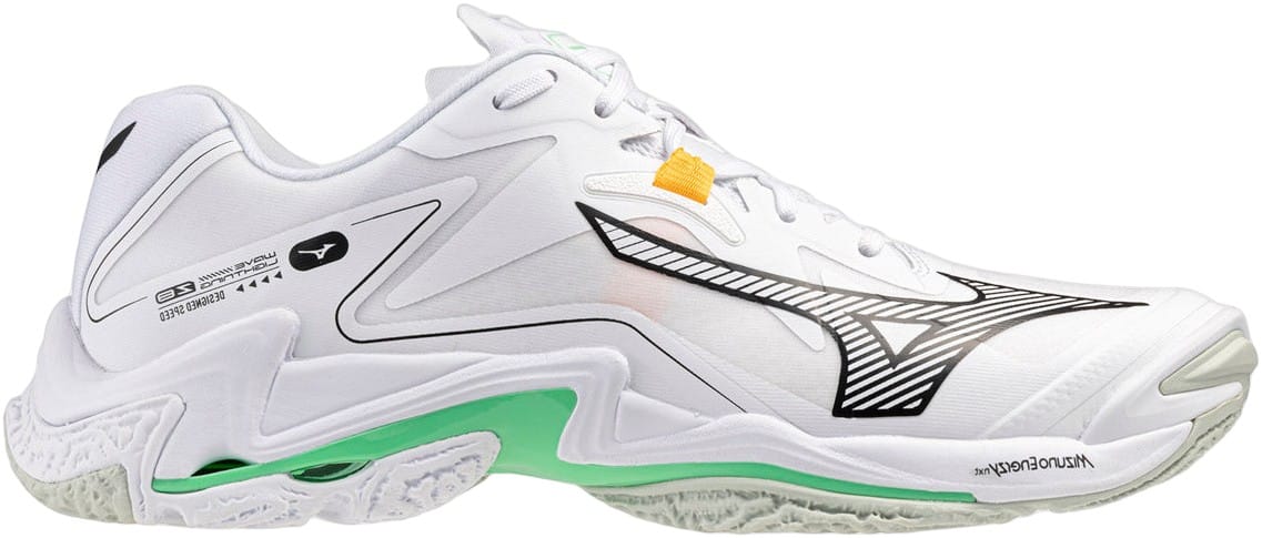 Mizuno Wave Lightning Z8 håndboldsko kombinerer letvægt og maksimal støtte med avanceret WAVE-teknologi, der sikrer stabilitet ved hurtige retningsskift og energifyldt hop. Overdelen i åndbart monofilament-mesh giver optimal ventilation, mens Dyna-Eyelet