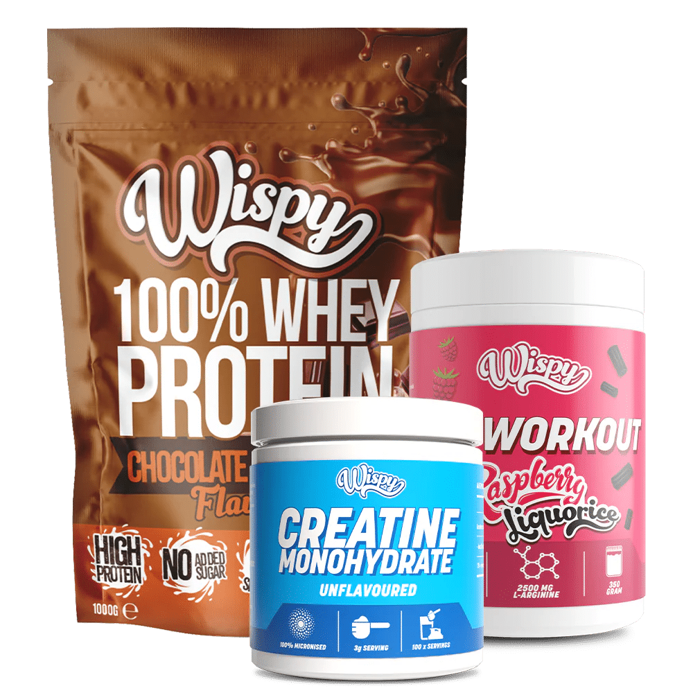Performance Pack Er du klar til at tage din træning til nye højder? Med Wispy Performance Pack får du den ultimative trio, der booster din styrke, energi og muskelvækst. Whey Proteinpulver hjælper dig med at opbygge og genopbygge muskelmasse. Creatine Monohydrate giver dig den eksplosive styrke og udholdenhed til at presse dig selv til næste niveau. Og Pre Workout giver dig den energi og fokus, du har brug for, til at få mest muligt ud af hver træning. Perfekt til både nye og erfarne atleter, der vil optimere deres resultater. Pakken indeholder: 1 x Wispy Whey Proteinpulver (1 kg) 1 x Wispy Creatine Monohydrate (300g) 1 x Wispy Pre Workout Vælg i mellem disse 9 overdådige smagsvarianter: Chocolate Milkshake En klassiker med fløjlsblød kakao og cremet mælkechokolade, der smelter sammen i en uforglemmelig smagsoplevelse. Perfekt til dig, der elsker chokolade i sin mest luksuriøse form. Strawberry White Chocolate En vidunderlig kombination af søde, modne jordbær og silkeblød hvid chokolade. En frisk og lækker smagsoplevelse, der balancerer lethed og sødme på bedste vis. Vanilla Milkshake Ren vanilje i sin mest delikate udgave. Den fyldige og runde smag gør dette proteinpulver til en uundgåelig favorit for enhver vaniljeelsker. Salted Caramel Den perfekte harmoni mellem sød karamel og et strejf af havsalt. En fyldig og luksuriøs smag, der tilfredsstiller alle sanser. Raspberry Swirl Saftige hindbær møder en blid sødme i denne sommerlige blanding. En frisk og balanceret smag, der gør hver slurk til en fornøjelse. Chocolate Hazelnut En dyb, rig chokoladesmag kombineret med nøddeagtig sødme fra hasselnødder. En cremet oplevelse, der oser af komfort og varme. Caramel Cappuccino En skøn fusion af aromatisk cappuccino og sød karamel. En fyldig og tilfredsstillende smag, der emmer af caféstemning. Tropical Summer En eksplosion af tropiske frugter, der bringer solskin til din dag. Frisk, frugtig og helt uimodståelig. Chocolate Orange En livlig kombination af intens chokolade og frisk appelsin. Smagen er rig og forfriskende – som et strejf af ren glæde i hver mundfuld. Anvendelse Bland 1 skefuld (33g) med 250 ml vand, eller mælk, i en shaker og ryst godt. Man kan med fordel indtage proteinpulveret før, under eller efter en træning. Eller ganske enkelt som et velsmagende og proteinrigt mellemmåltid i løbet af dagen. Med den fantastiske kvalitet og vidunderlige smag, fungerer Wispy proteinpulveret desuden fremragende godt i opskrifter, som blandt andet havregrød, desserter eller diverse bagværk. Næringsindhold NÆRINGSINDHOLD: Chocolate Milkshake Indhold pr. 100 g Energi 1630 kJ / 390 kcal Fedt 7 g – heraf mættede fedtsyrer 3,9 g Kulhydrater 7,4 g – heraf sukkerarter 6,4 g Kostfibre 3,9 g Protein 70 g Salt 1,2 g Ingredienser Valleproteinkoncentrat (mælk), fedtreduceret kakaopulver, aroma, emulgator (e466, soja lecithin), salt, sødestoffer (aspartam, acesulfamkalium). Produktinformation: Proteinpulver med smag af chokolade. Indeholder sødestoffer og et naturligt indhold af sukker. Indeholder en phenylalaninkilde. Brugsanvisning: Kan bruges som supplement til en sund og varieret kost. Bland 1 skefuld (33g) 1-4 gange dagligt i en shaker med 250 ml vand eller mælk. Opbevares lukket, tørt og ved stuetemperatur. NÆRINGSINDHOLD: Vanilla Milkshake Indhold pr. 100 g Energi 1590 kJ / 380 kcal Fedt 5,7 g – heraf mættede fedtsyrer 3,6 g Kulhydrater 10,4 g – heraf sukkerarter 9 g Kostfibre 1 g Protein 70 g Salt 0,75 g Ingredienser Valleproteinkoncentrat (mælk), aroma, emulgator (e466, soja lecithin), salt, sødestoffer (sukralose, acesulfamkalium). Produktinformation: Proteinpulver med smag af vanilje. Indeholder sødestoffer og et naturligt indhold af sukker. Indeholder en phenylalaninkilde. Brugsanvisning: Kan bruges som supplement til en sund og varieret kost. Bland 1 skefuld (33g) 1-4 gange dagligt i en shaker med 250 ml vand eller mælk. Opbevares lukket, tørt og ved stuetemperatur. NÆRINGSINDHOLD: Strawberry White Chocolate Indhold pr. 100 g Energi 1590 kJ / 380 kcal Fedt 5,7 g – heraf mættede fedtsyrer 3,6 g Kulhydrater 10,4 g – heraf sukkerarter 9 g Kostfibre 1 g Protein 70 g Salt 0,6 g Ingredienser Valleproteinkoncentrat (mælk), aroma, emulgator (e466, soja lecithin), farvestof (rødbedefarve), surhedsregulerende middel (æblesyre), sødestoffer (sukralose, acesulfamkalium). Produktinformation: Proteinpulver med smag af jordbær og hvid chokolade. Indeholder sødestoffer og et naturligt indhold af sukker. Indeholder en phenylalaninkilde. Brugsanvisning: Kan bruges som supplement til en sund og varieret kost. Bland 1 skefuld (33g) 1-4 gange dagligt i en shaker med 250 ml vand eller mælk. Opbevares lukket, tørt og ved stuetemperatur. NÆRINGSINDHOLD: Chocolate Hazelnut Indhold pr. 100 g Energi 1630 kJ / 390 kcal Fedt 7 g – heraf mættede fedtsyrer 3,9 g Kulhydrater 7,4 g – heraf sukkerarter 6,4 g Kostfibre 3,9 g Protein 70 g Salt 1,2 g Ingredienser Valleproteinkoncentrat (mælk), fedtreduceret kakaopulver, aroma, emulgator (e466, soja lecithin), salt, sødestoffer (aspartam, acesulfamkalium). Produktinformation: Proteinpulver med smag af chokolade og hasselnød. Indeholder sødestoffer og et naturligt indhold af sukker. Indeholder en phenylalaninkilde. Brugsanvisning: Kan bruges som supplement til en sund og varieret kost. Bland 1 skefuld (33g) 1-4 gange dagligt i en shaker med 250 ml vand eller mælk. Opbevares lukket, tørt og ved stuetemperatur. NÆRINGSINDHOLD: Caramel Cappuccino Indhold pr. 100 g Energi 1590 kJ / 380 kcal Fedt 5,7 g – heraf mættede fedtsyrer 3,6 g Kulhydrater 10,4 g – heraf sukkerarter 9 g Kostfibre 1 g Protein 70 g Salt 0,3 g Ingredienser Valleproteinkoncentrat (mælk), aroma, frysetørret kaffe (1%), emulgator (e466, soja lecithin), sødestoffer (sukralose, acesulfamkalium). Produktinformation: Proteinpulver med smag af karamel og kaffe. Indeholder sødestoffer og et naturligt indhold af sukker. Brugsa
